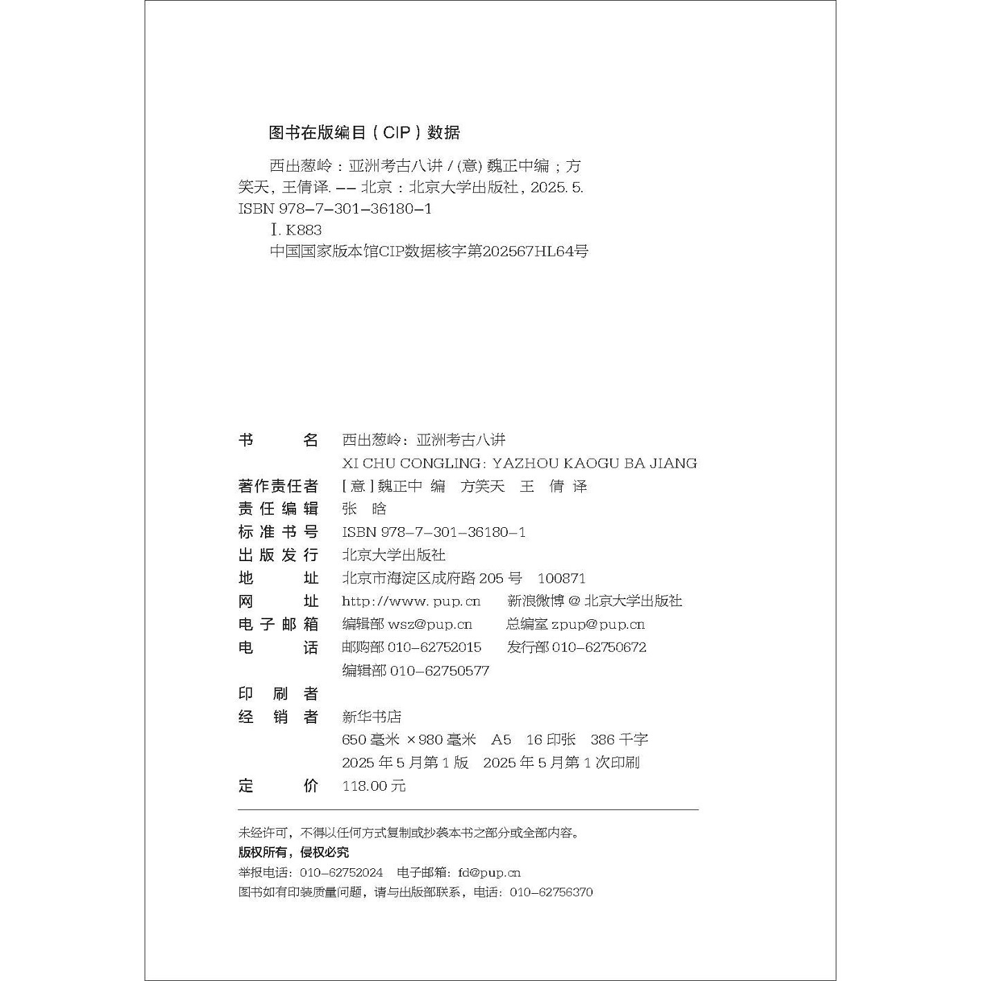 新华书店正版 西出葱岭:亚洲考古八讲 编 魏正中 王倩 考古社科 图书籍 文物 意 著 译 社 北京大学出版 方笑天 新华正版