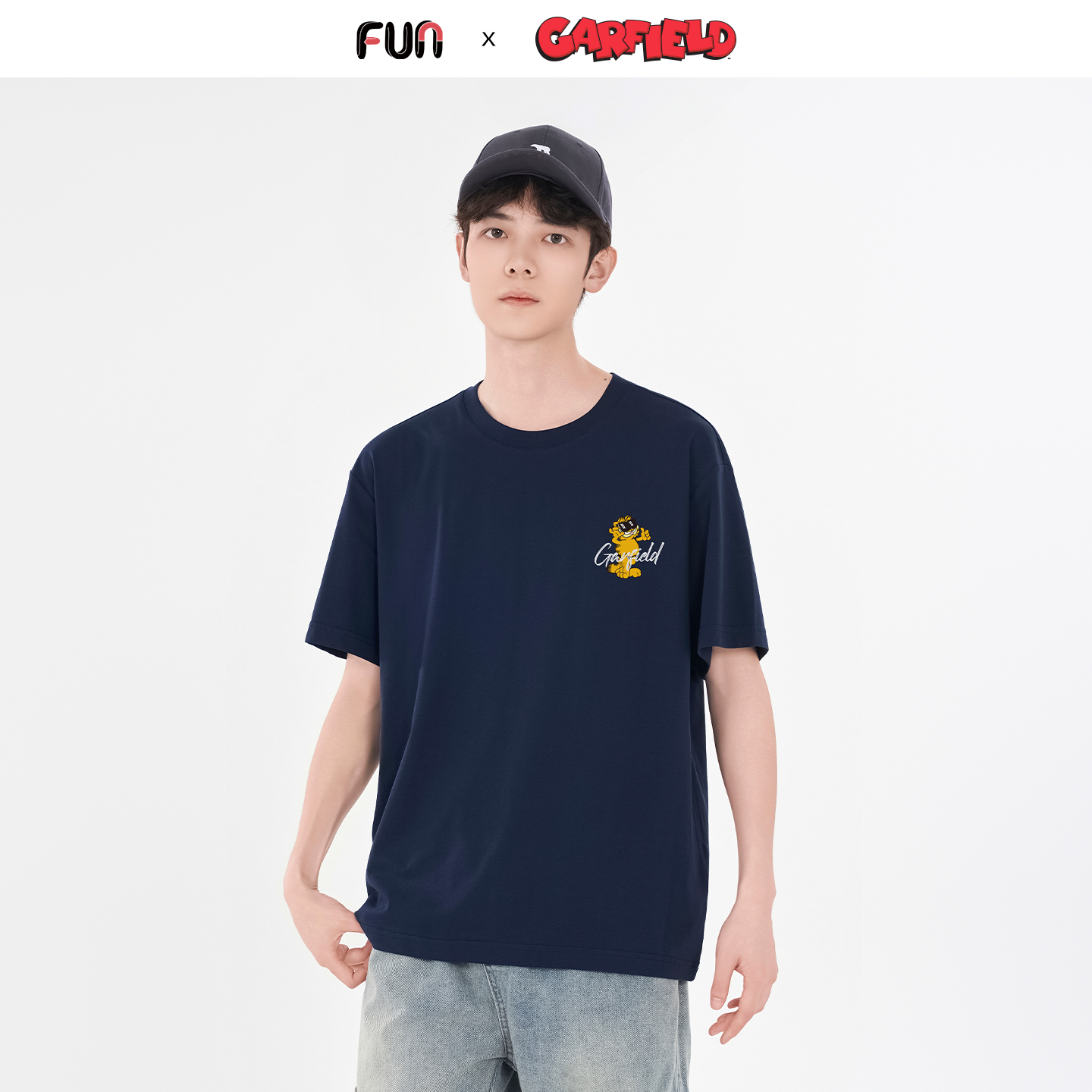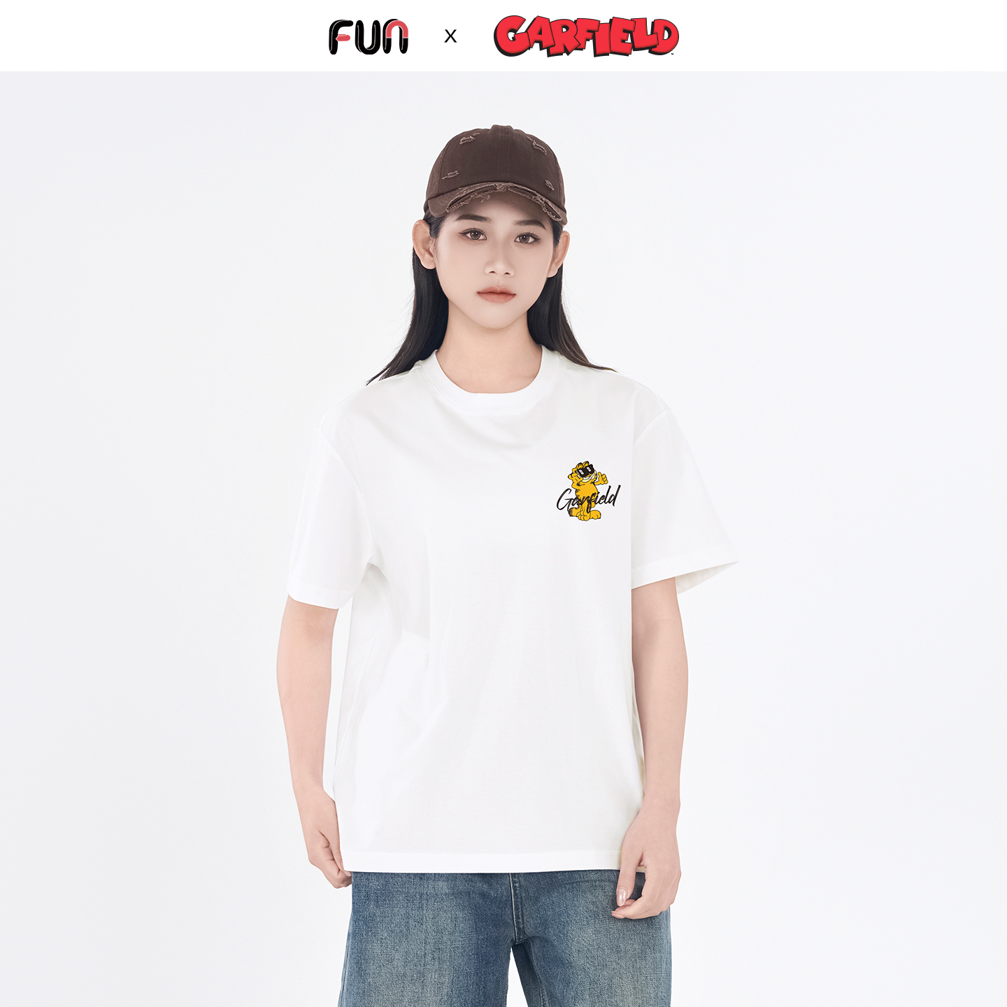 加菲猫联名卡通印花休闲短袖 Fun潮牌圆领T恤男2025年夏季 新款