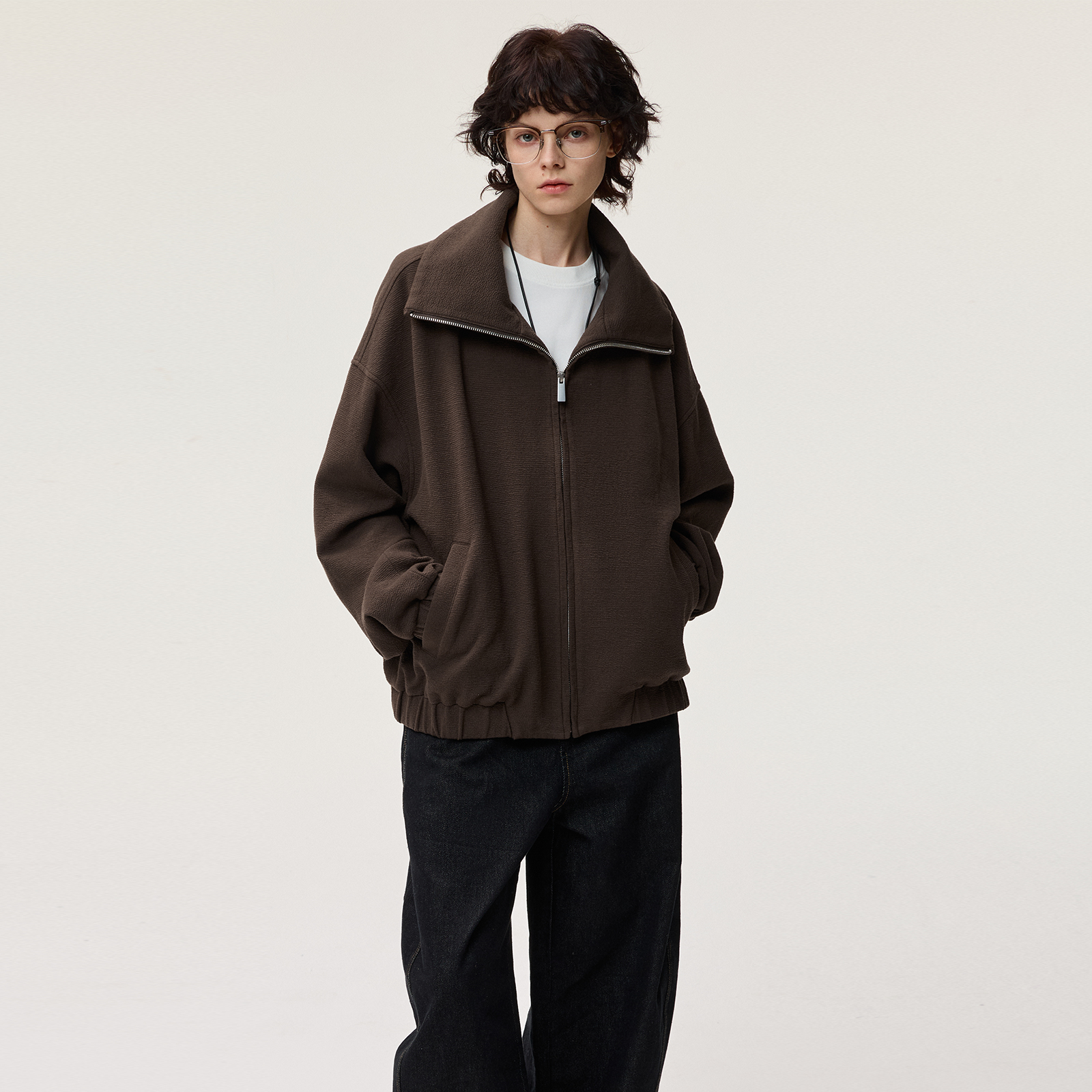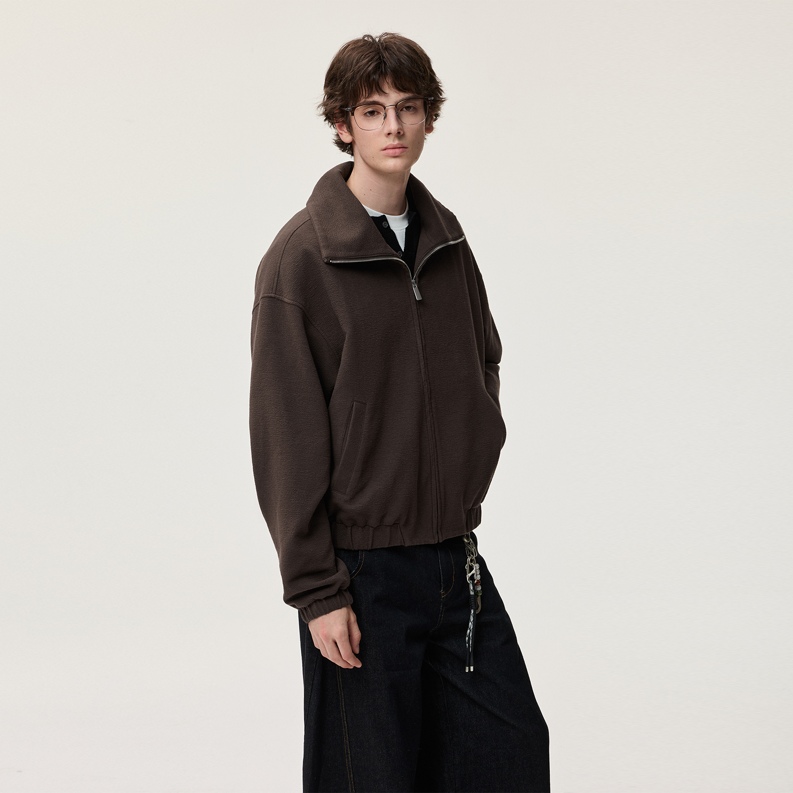 Lilbetter褶皱肌理感针织高领夹克2025秋男女同款 宽松挺括外套LB