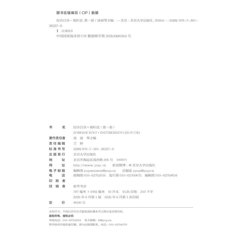 视听说 综合日语 第一册 汤丽 社9787301363270 正版 北京大学出版 2025新书
