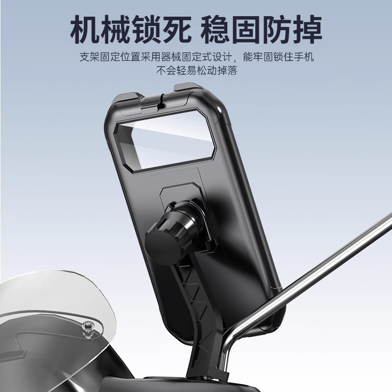 洛亦骑行手机支架防雨电瓶摩托车外卖骑手后视镜防水防震导航专用固定架自行车适用小牛电动车车把款 通用型