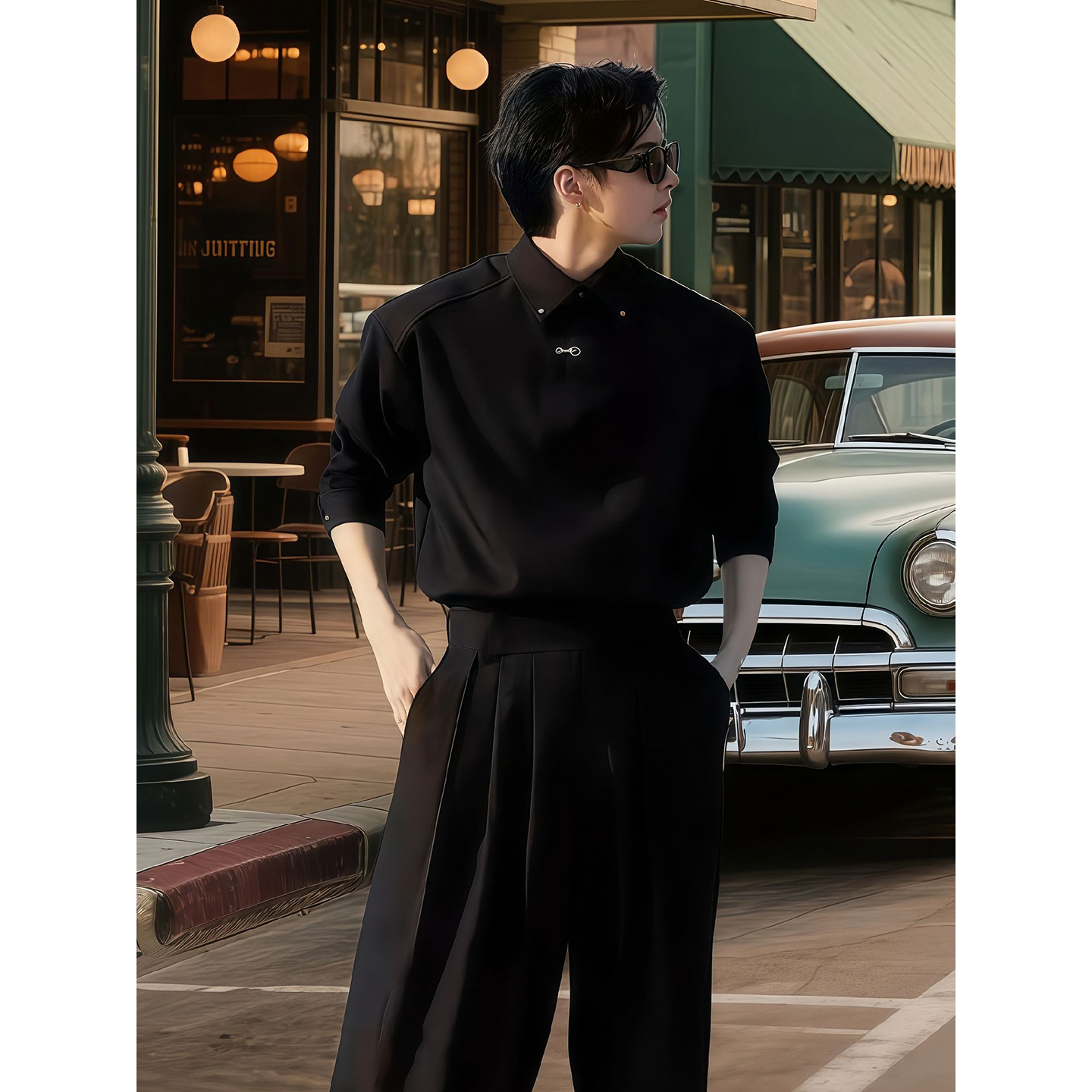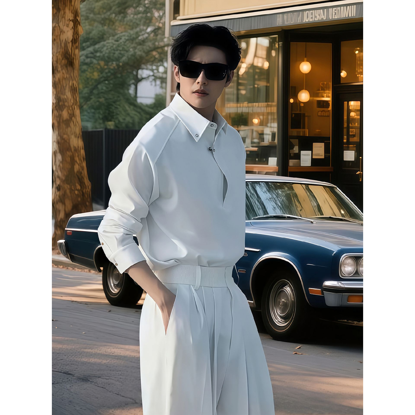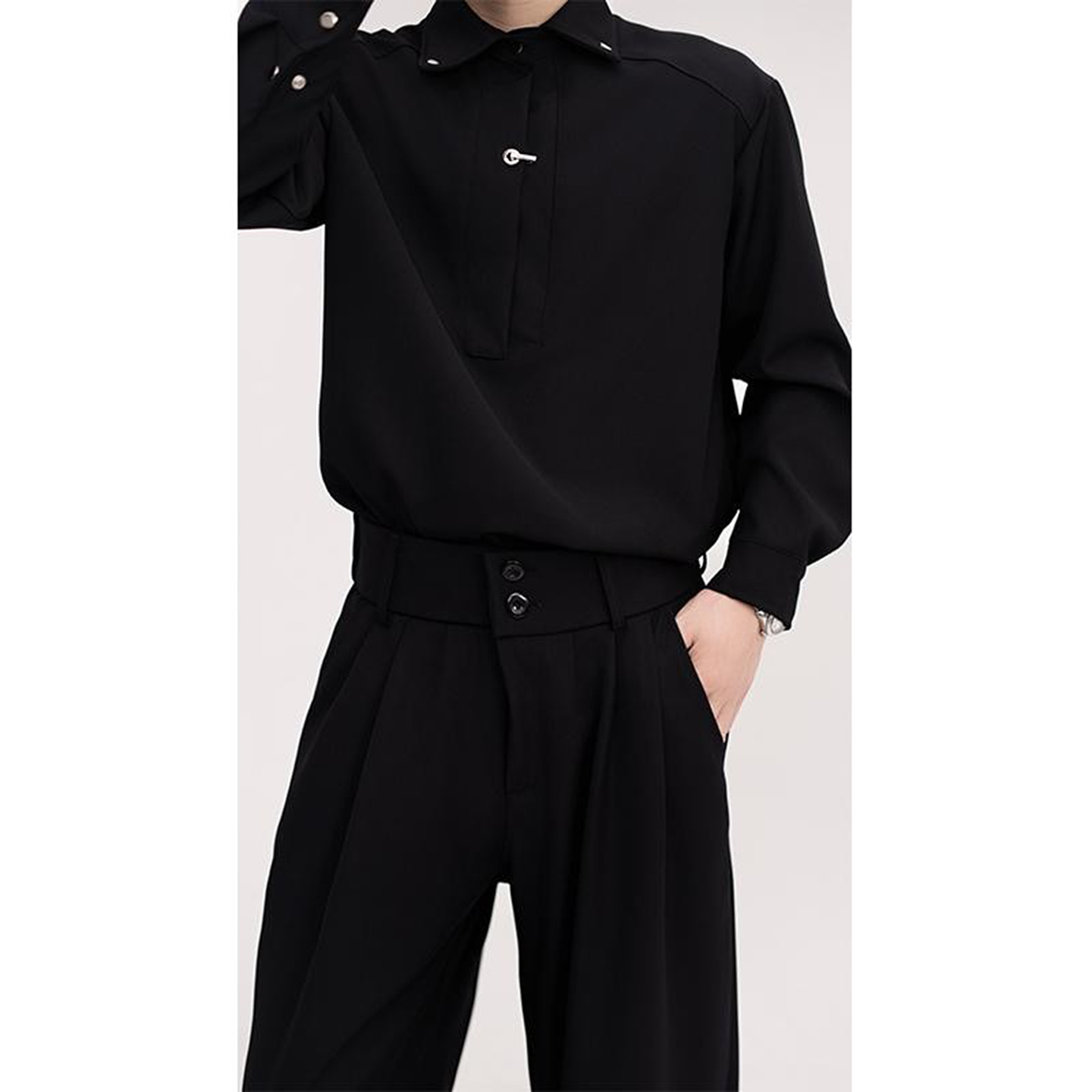 男装 裤 飞机扣衬衫 痞帅风男模一整套穿搭高腰垂感西装 韩版 设计师款