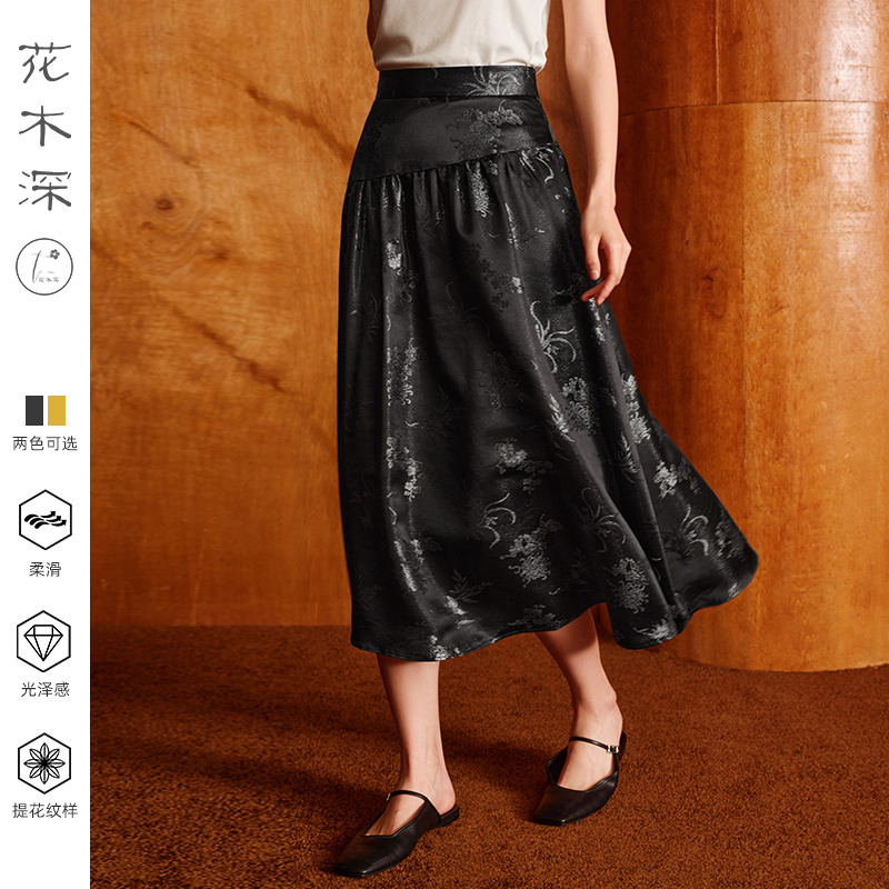 烫金网纱半身裙女秋冬开叉长裙HS0028 新中式 COCOBELLA 浮金碎影