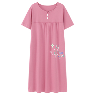 家居服大码 猫人睡裙女夏短袖 女士中老年夏季 妈妈睡衣2025新款 薄款
