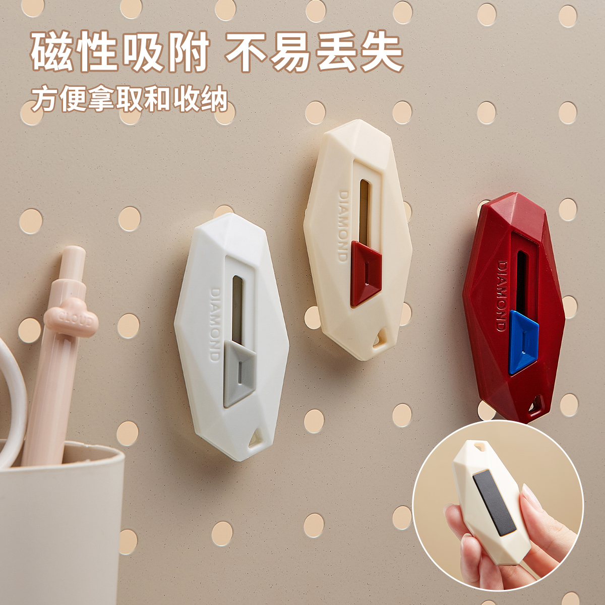 三年二班磁吸快递刀自动回弹多功能美工刀便携随身迷你拆快递包裹专用刀可带上高铁飞机开箱拆封刀神器高颜值