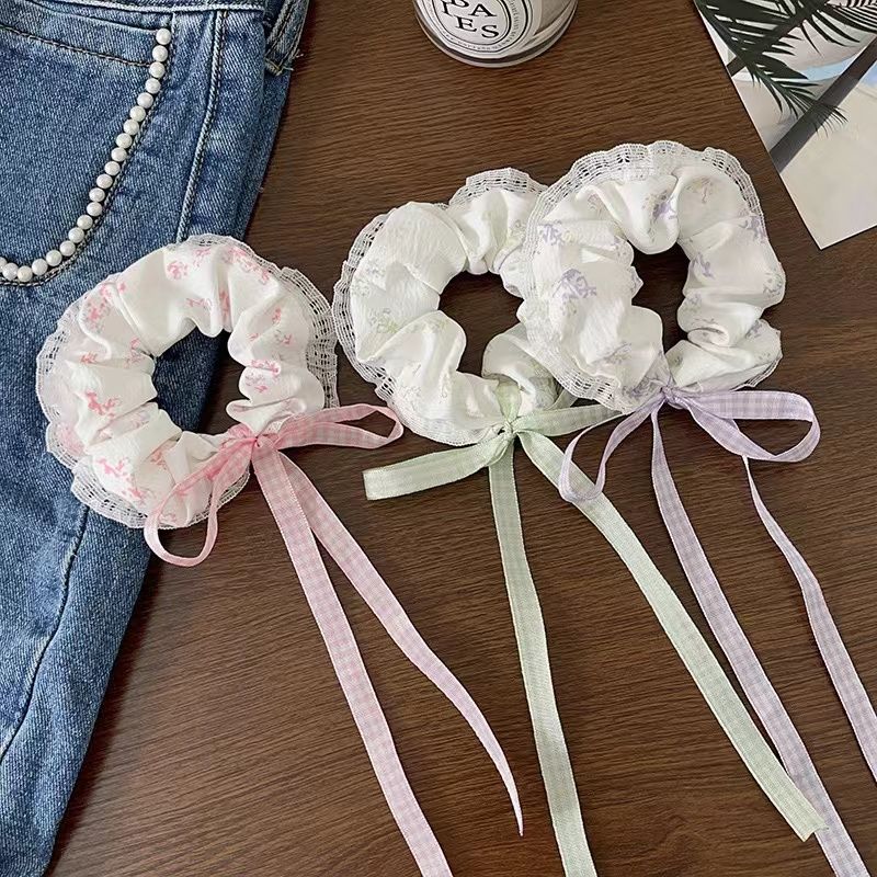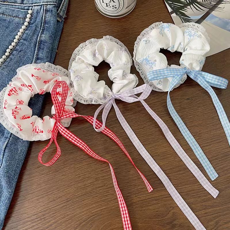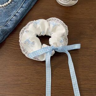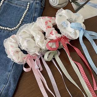 蝴蝶结蕾丝花边高格子飘带皮筋扎大肠发圈马尾可爱甜甜圈发饰头饰