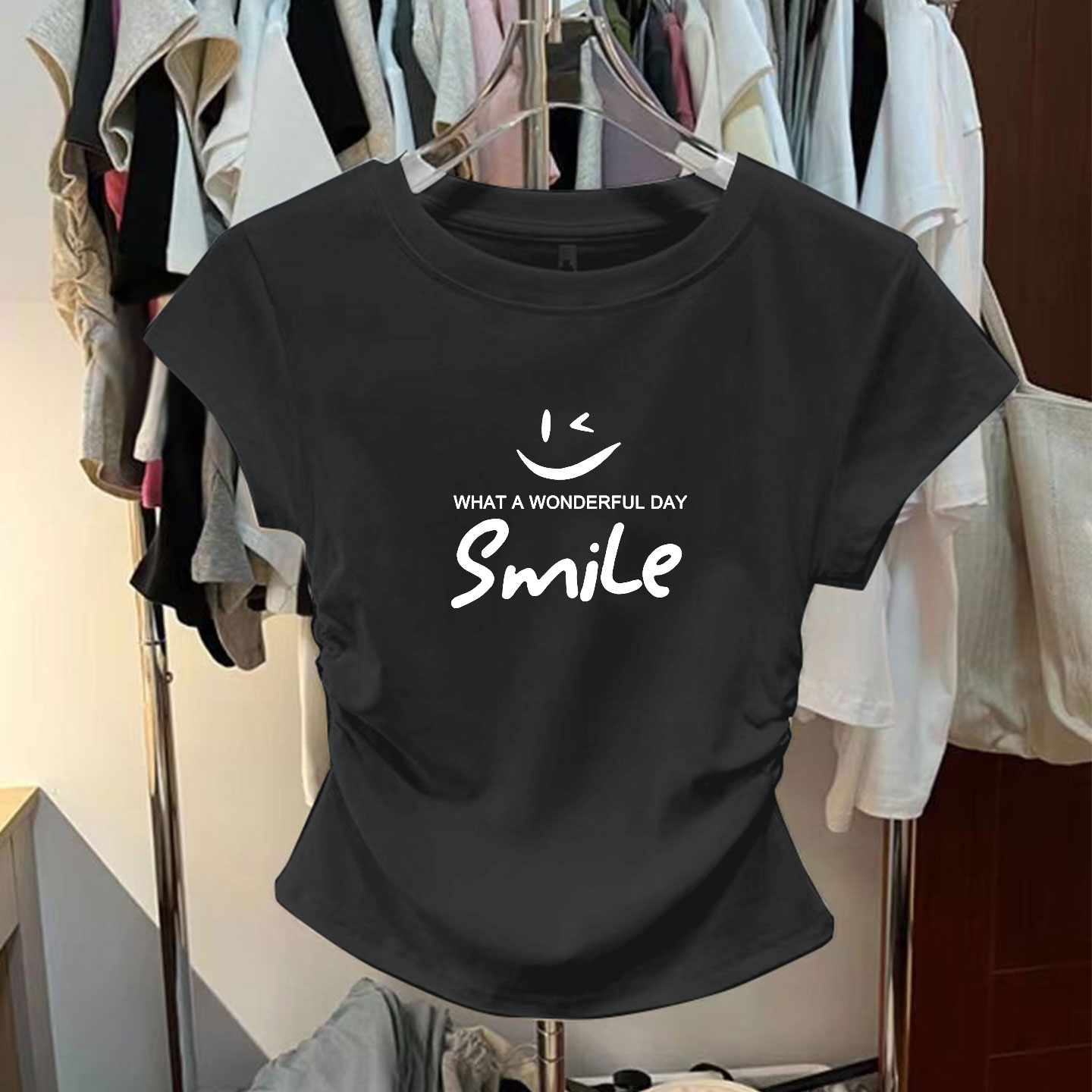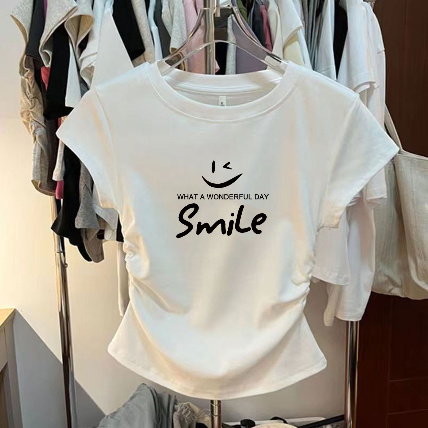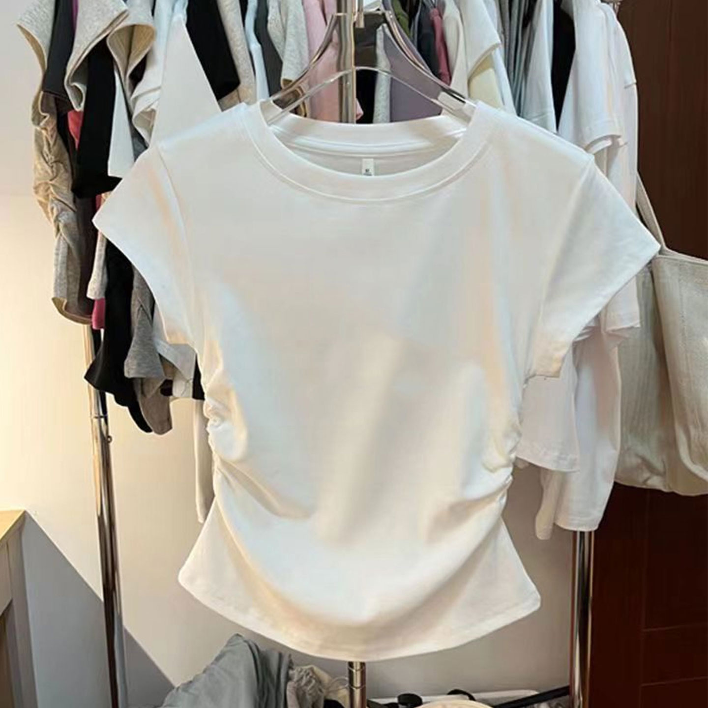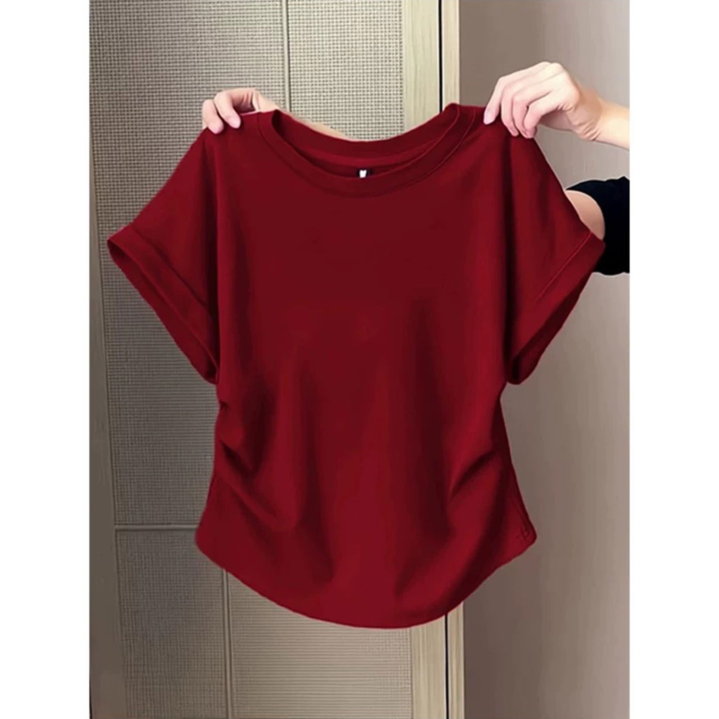 女大童酒红色洋气时髦短款 童装 夏季 2025新款 收腰上衣 女孩t恤短袖