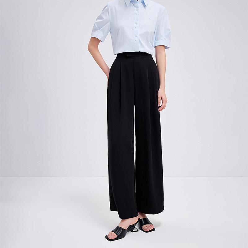 子 阔腿裤 Navigare意大利小帆船休闲黑色长裤 女士高腰显瘦西裤