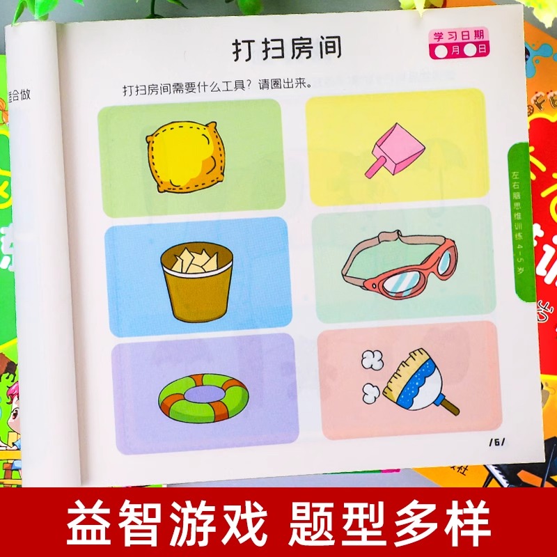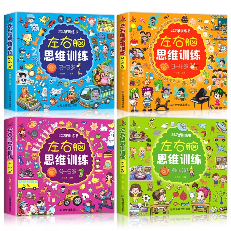5到6岁幼儿看 全套4册 书大脑智力开发专注力训练幼儿园小中大班益智书籍宝宝启蒙早教书 儿童左右脑全脑开发思维训练书适合2