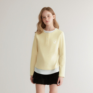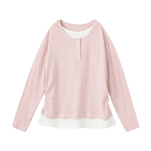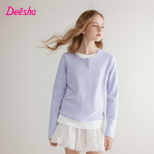 大童儿童圆领宽松体恤上衣春秋迪莎 新款 笛莎女童长袖 T恤2025秋季