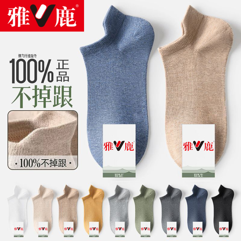 船袜 纯棉夏天短袜男士 雅鹿袜子男中筒防臭吸汗抗菌夏季 长袜薄款