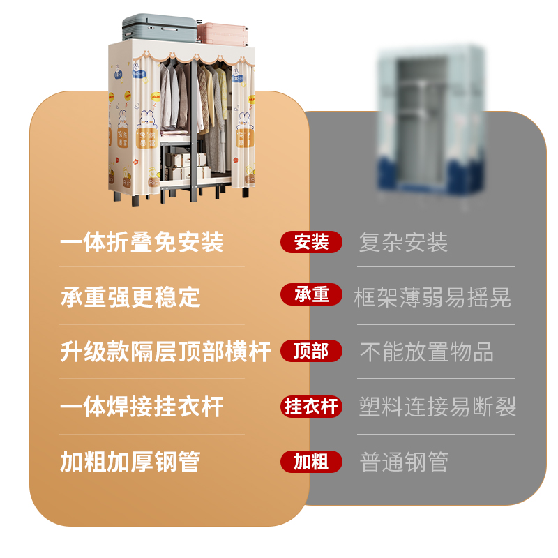 简易衣柜卧室家用免安装 布衣柜加厚加粗出租房用全钢架折叠衣柜