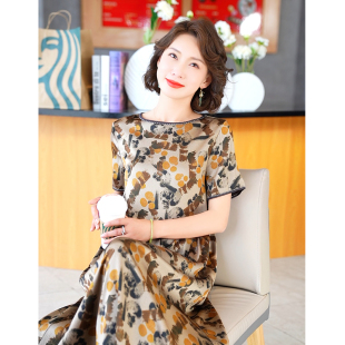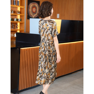 XZY 宽松休闲度假长裙 微胖复古波西米亚印花挂脖连衣裙女25年夏季