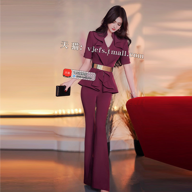 套装 气质干练西装 两件套新款 VJE春夏设计感荷叶边外套喇叭裤