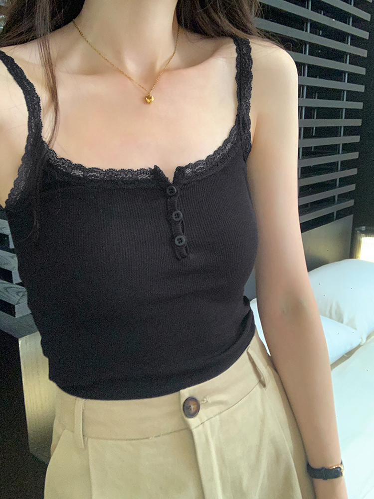纯欲背心打底无袖 显瘦短款 上衣 修身 甜辣蕾丝边小吊带内搭女夏大码