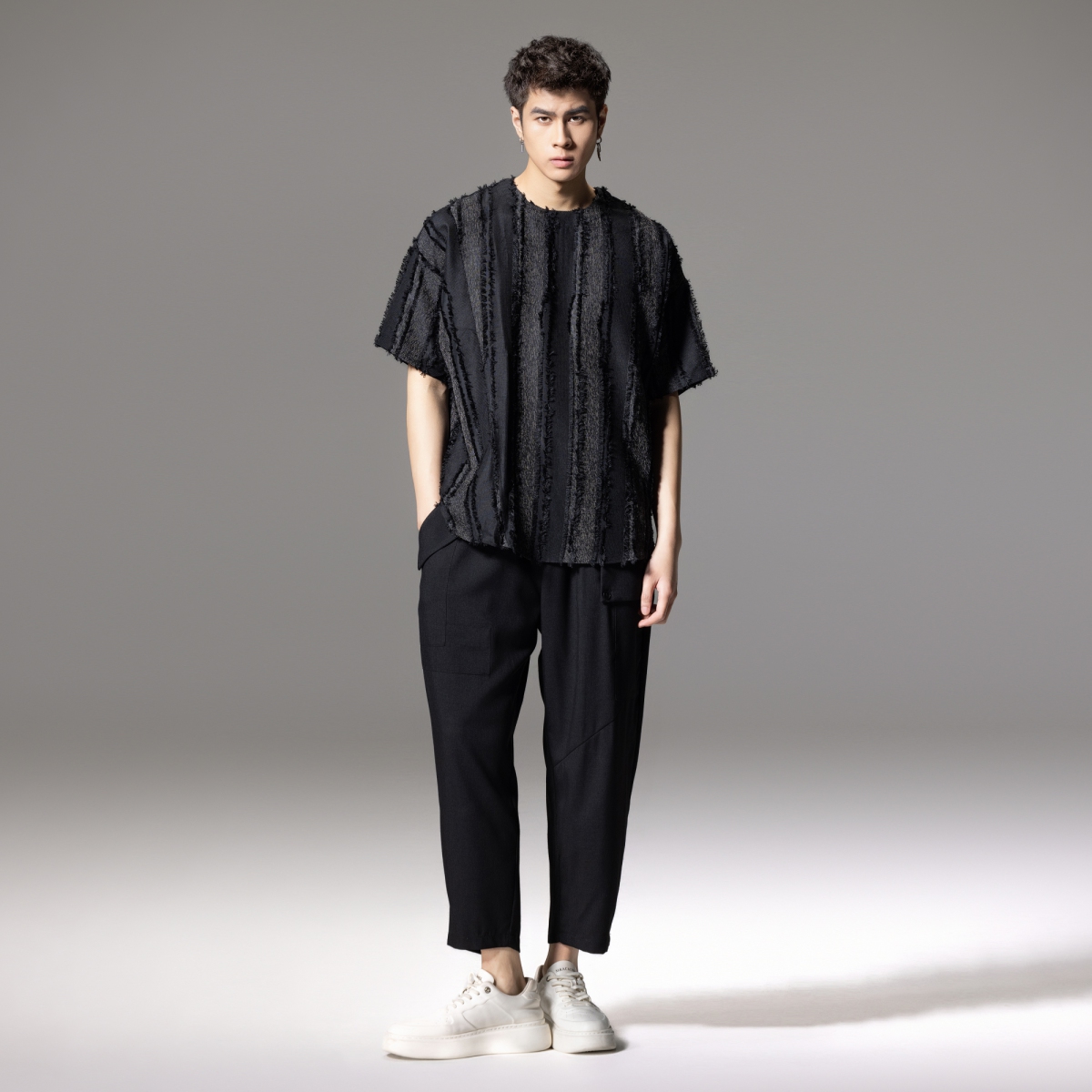 休闲体恤衫 PINLI品立夏季 T恤潮牌宽松流苏时尚 竖条纹短袖 新款
