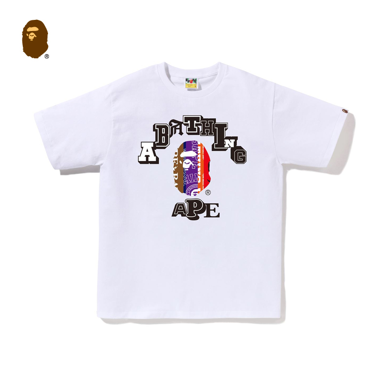 BAPE男装 T恤110323M 春夏标校队多图案字母拼接猿人印花短袖