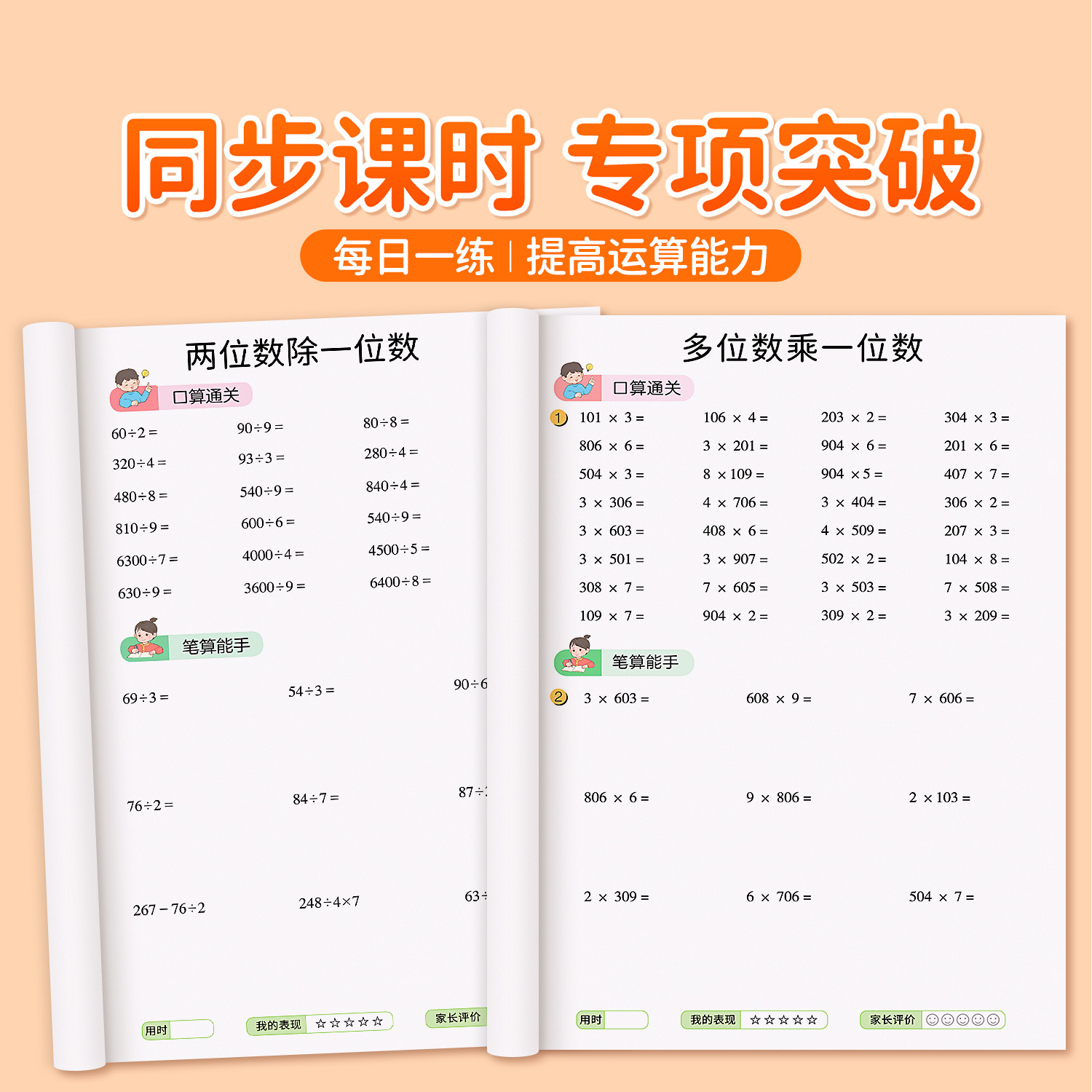 竖式 脱式 小学3年级上下学期数学应用题思维专项训练 同步练习题横式 三年级上册下册口算题天天练数学计算题强化训练口算题卡人教版