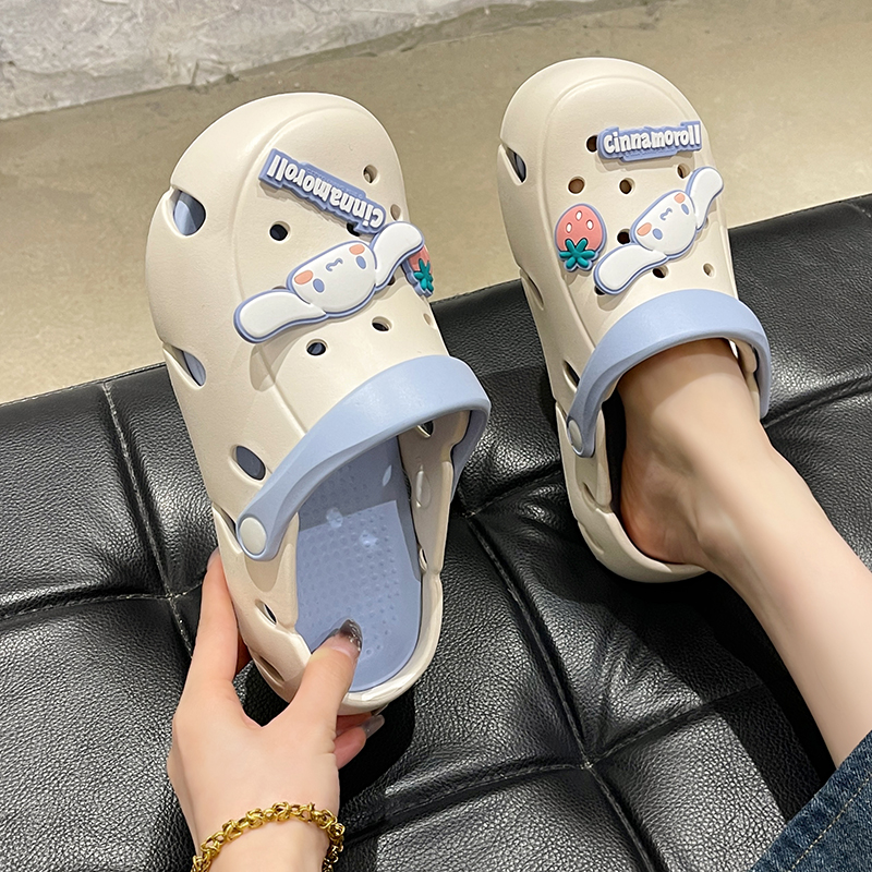 外穿可爱卡通防滑两穿踩屎感包头软底沙滩凉拖鞋 厚底洞洞鞋 女夏季