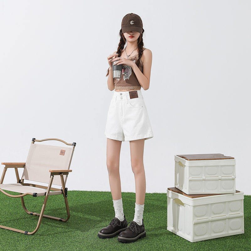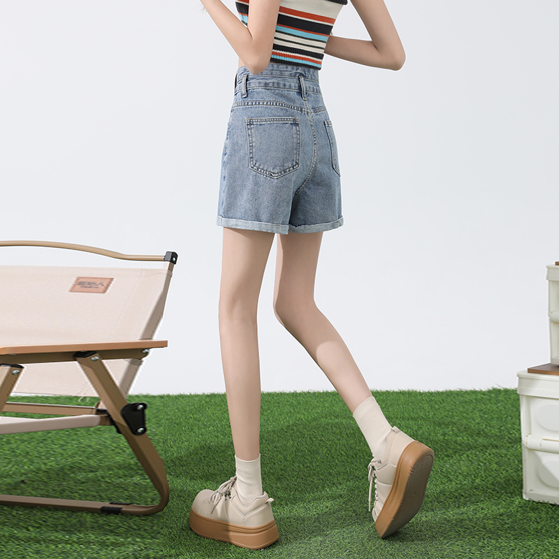 潮流高腰浅色宽松小个子卷边阔腿a字热裤 时尚 女2025新款 牛仔短裤