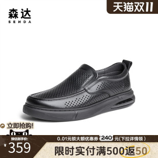 休闲皮鞋 新款 男士 软底一脚蹬真皮鞋 红蜻蜓男鞋 子男中年爸爸鞋 秋季