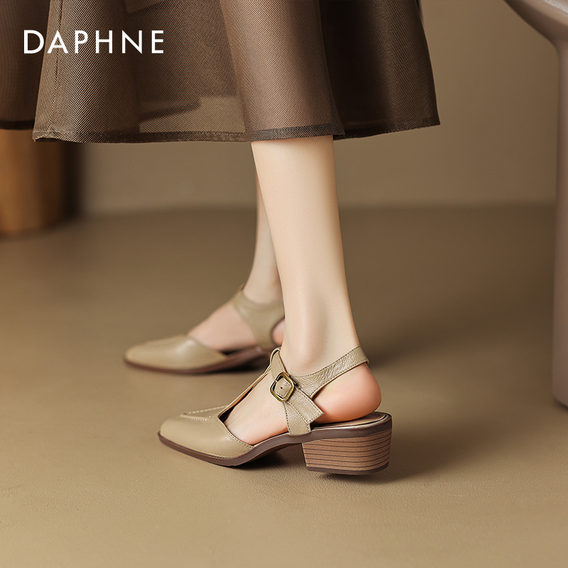 女款 送妈妈粗跟单鞋 2025新款 外穿包头法式 夏季 达芙妮气质高跟凉鞋