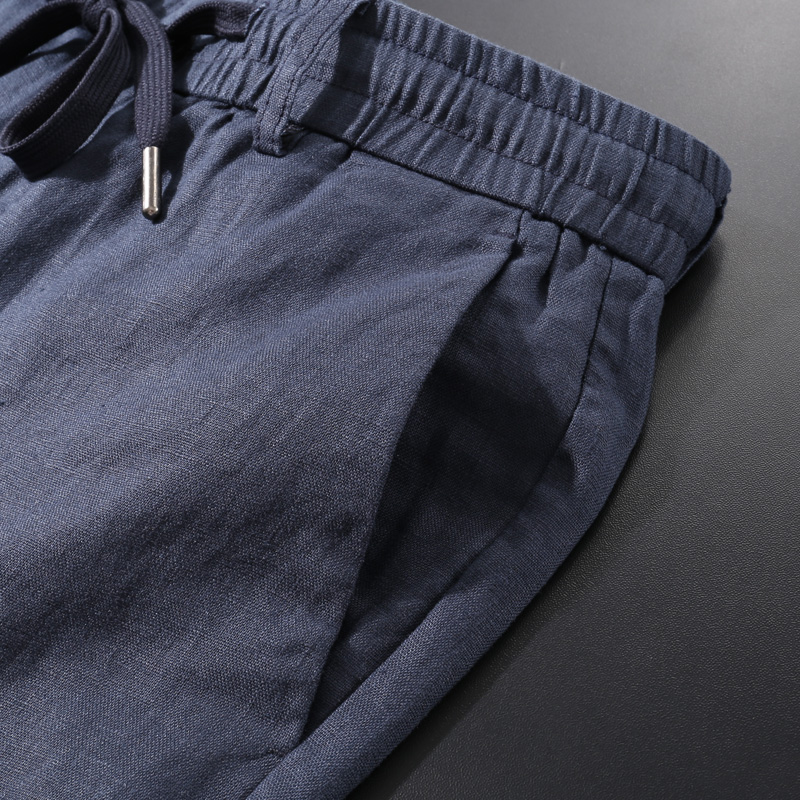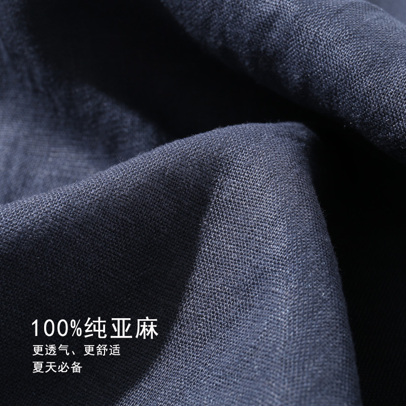 男夏季 男2024新款 薄款 休闲长裤 松紧腰 进口高端宽松直筒大码 亚麻裤