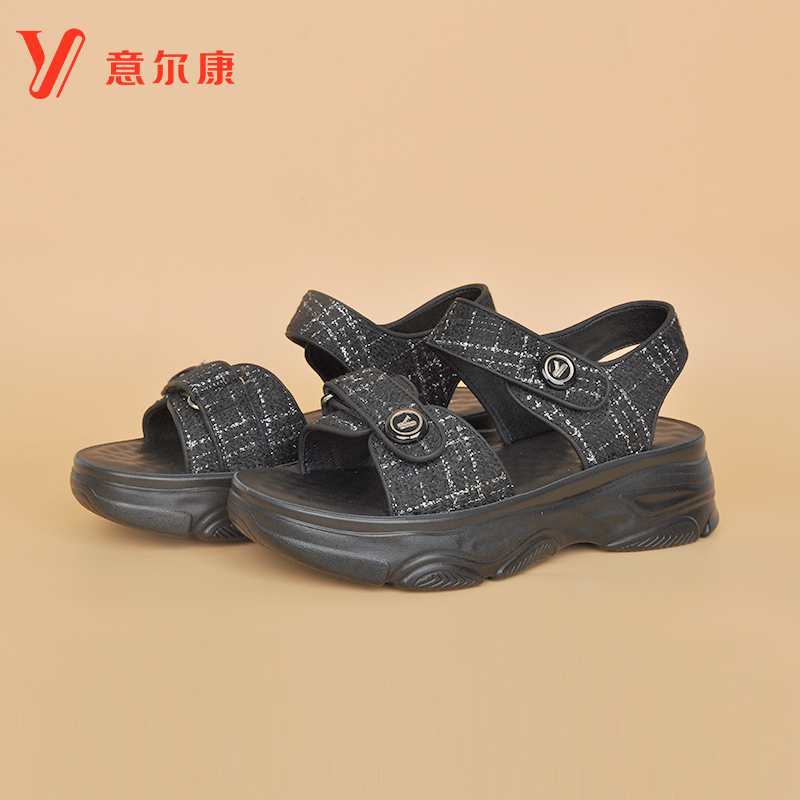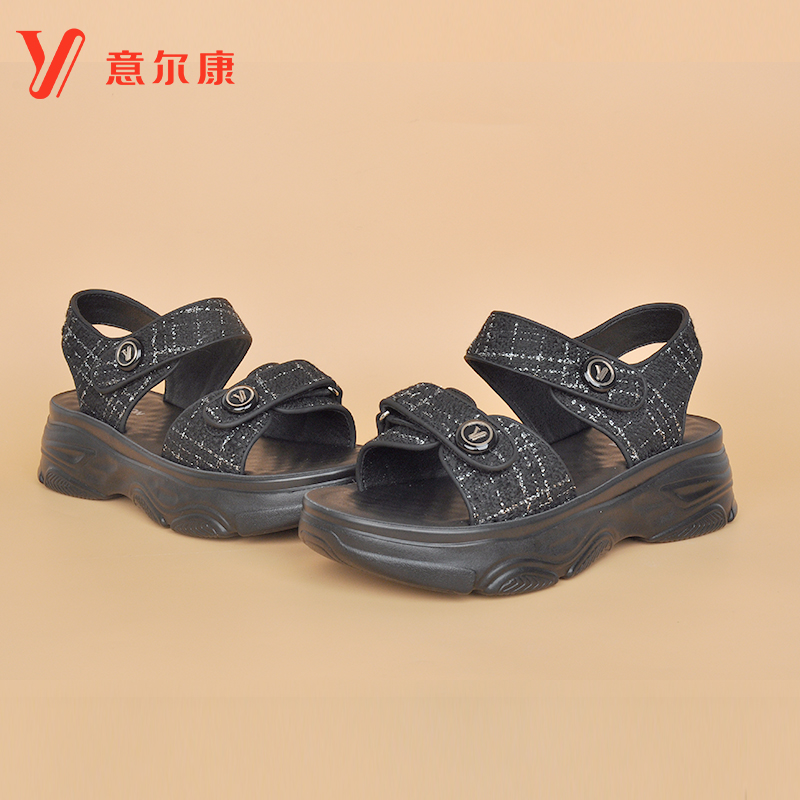 女2024新款 小香风一字扣带休闲厚底沙滩鞋 夏季 时尚 女款 意尔康凉鞋