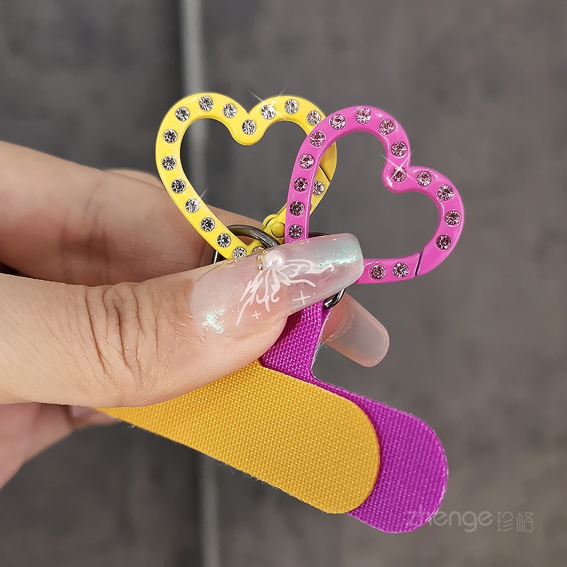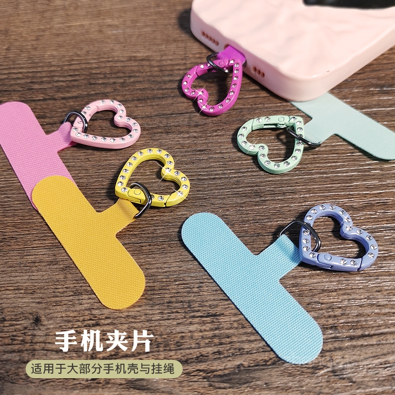 爱心镶钻弹簧圈挂扣ins手机挂绳夹片手环手串汽车钥匙小吊绳通用圆扣不顶壳薄片垫片结实耐用防断防摔手机新