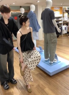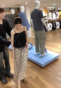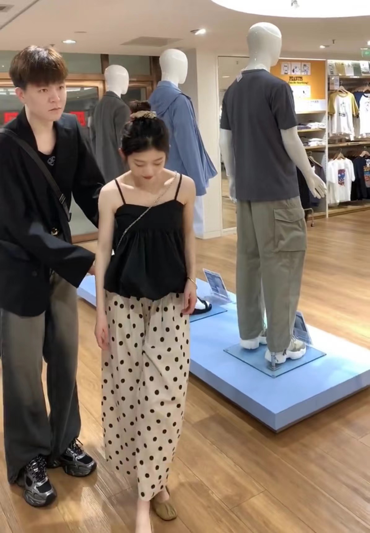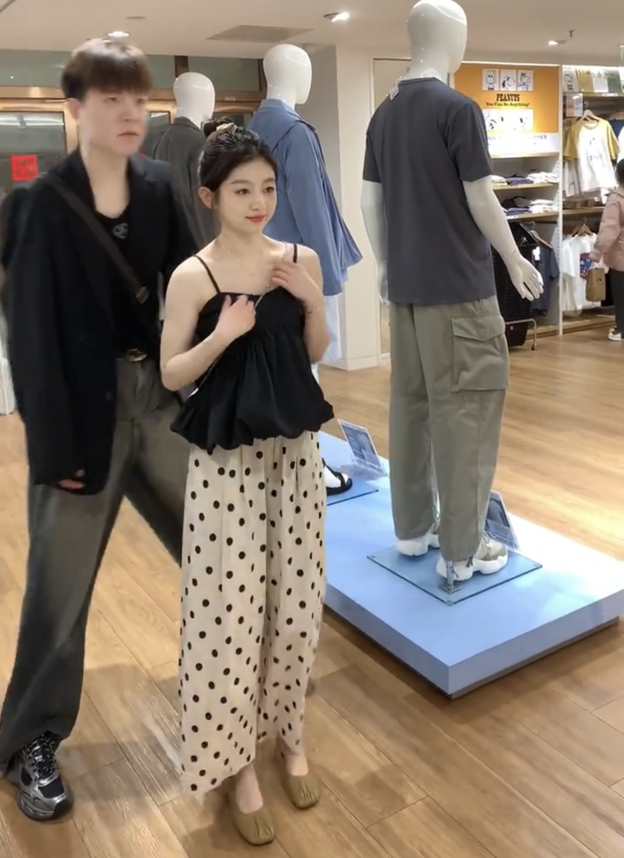 收腰显瘦上衣搭配波点阔腿裤 新款 两件套 女夏季 韩系高级感黑色小衫