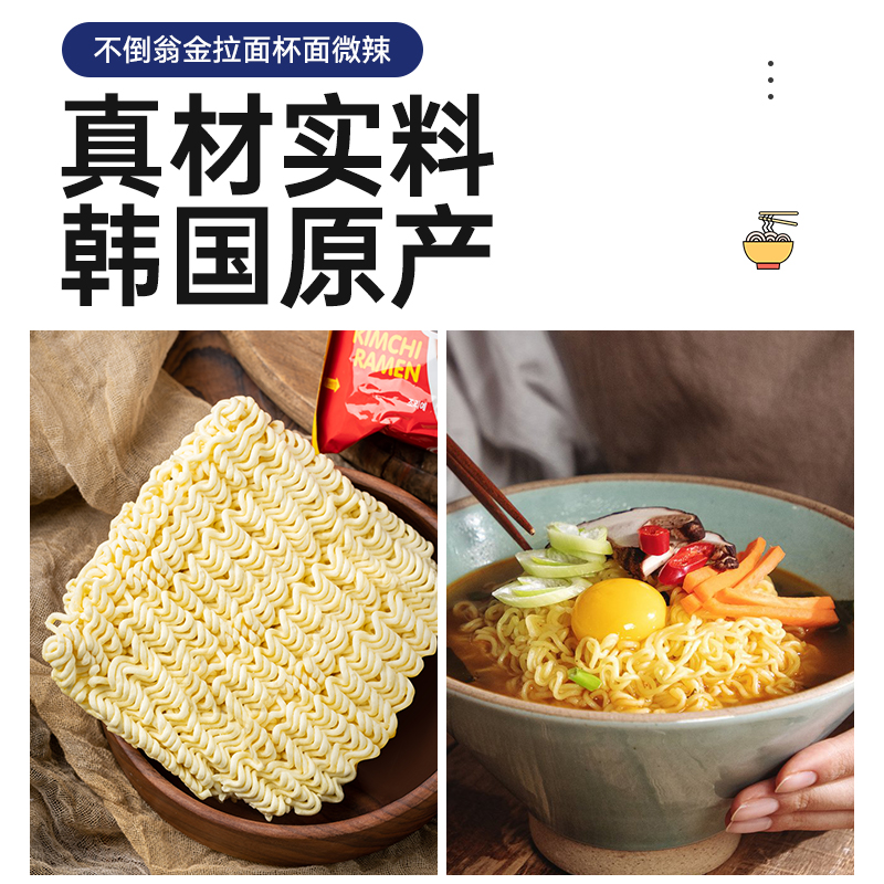不倒翁韩国进口原味微辣金拉面65g 泡面拉面 3桶方便面速食杯装