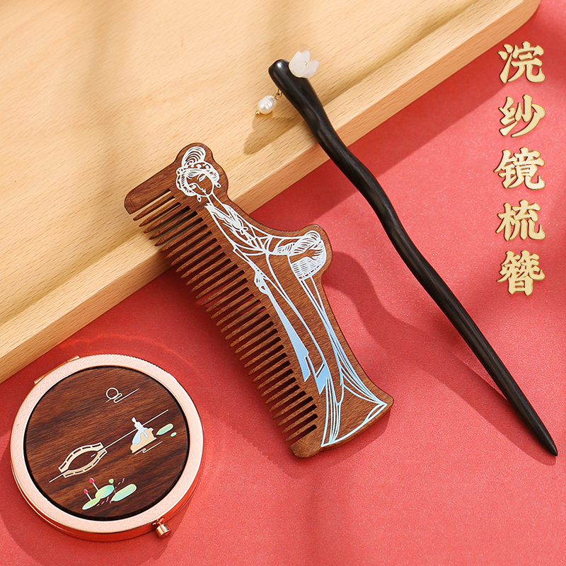 迷你木梳子化妆镜梳妆镜礼盒套装 小梳子女随身镜便携周岁小镜子
