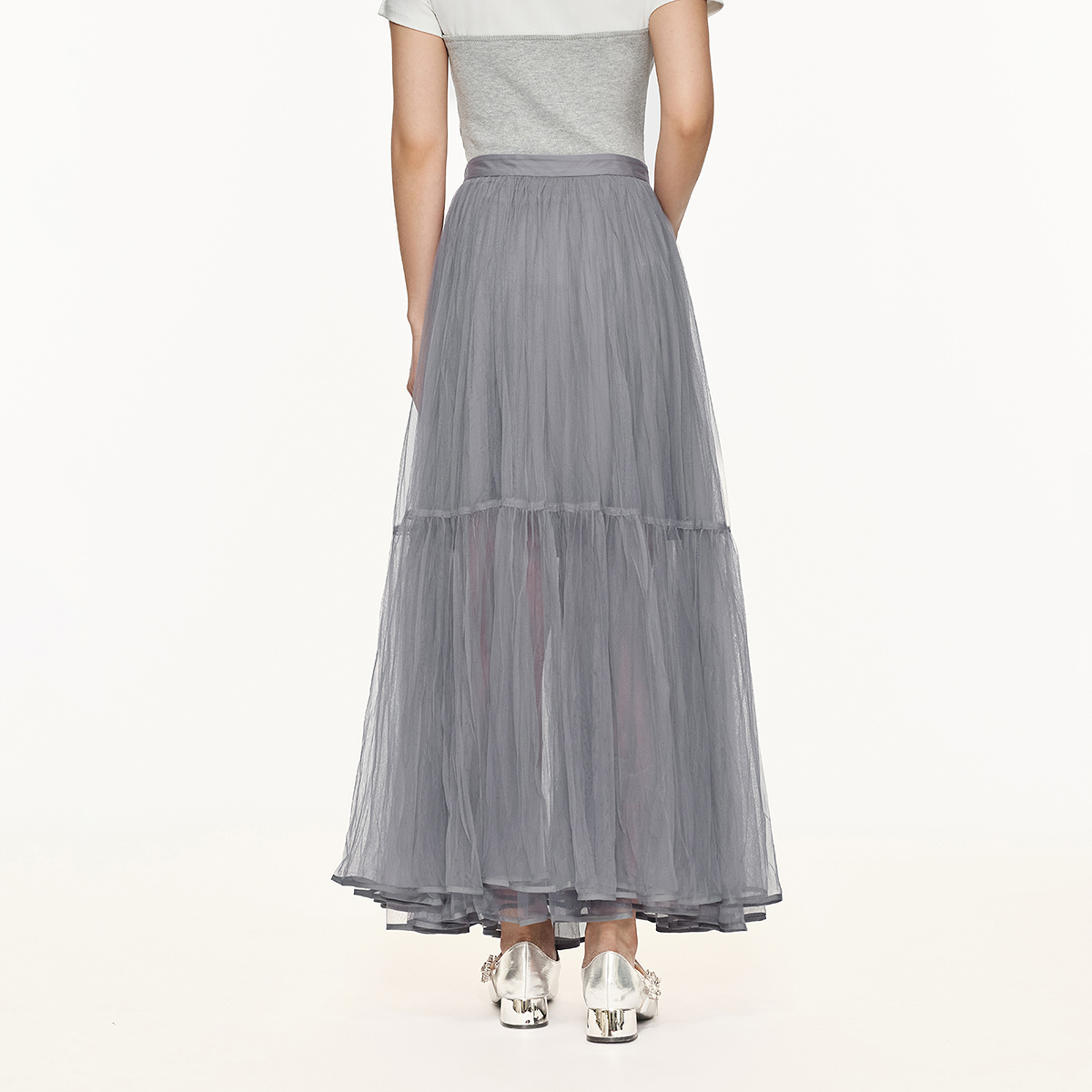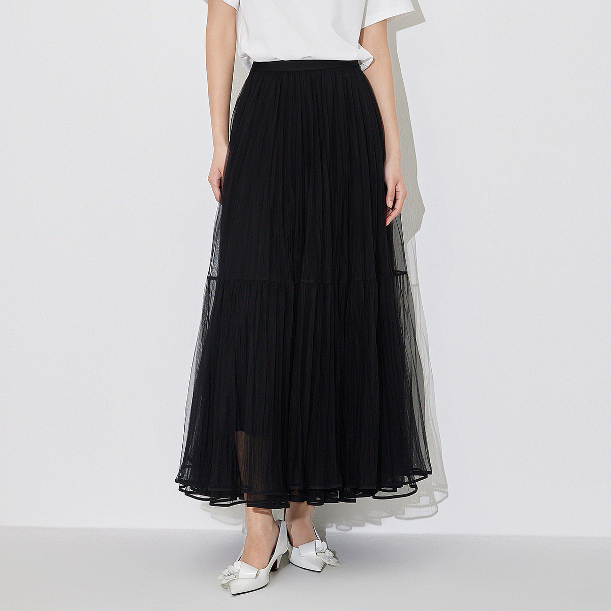 FIVE 高腰A字裙超仙气质长裙 PLUS半身裙女纱裙法式