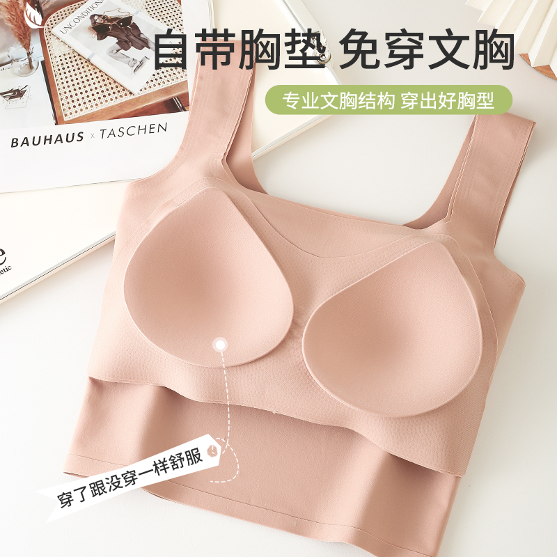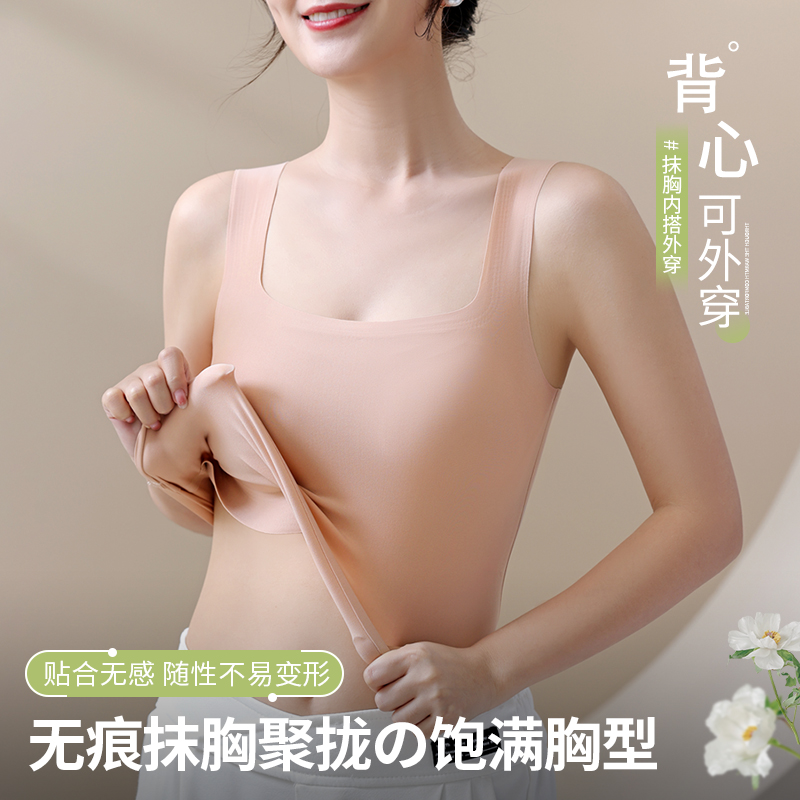 无痕打底免穿文胸一体式 文胸罩 美背固定杯聚拢防下垂可外穿背心式