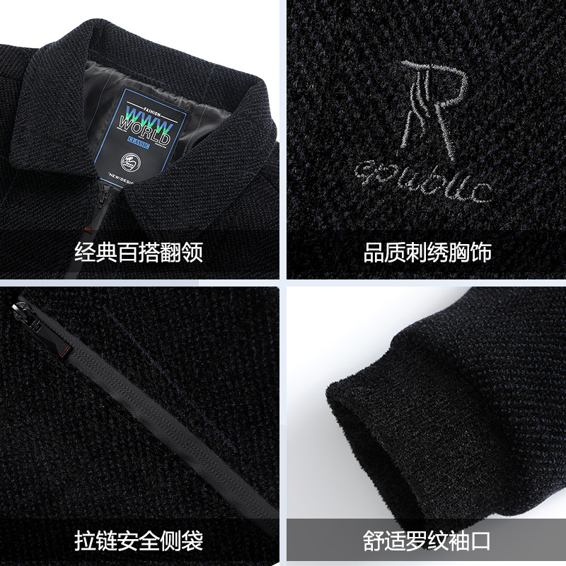 爷爷衣服 上衣厚款 中老年男士 夹克秋冬外套高档雪尼尔面料爸爸秋装