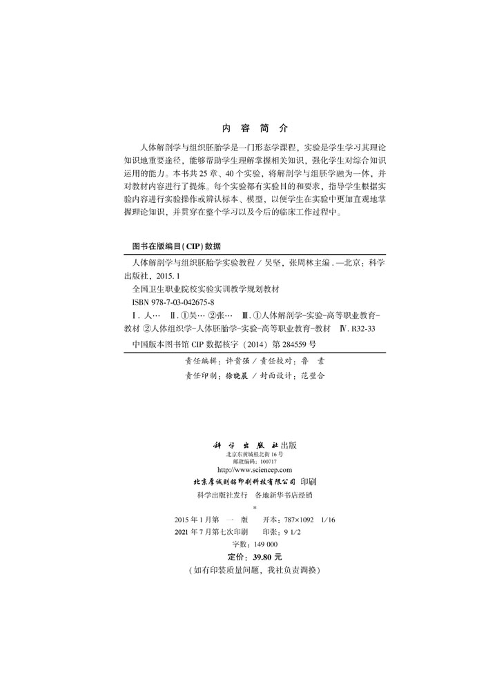人体解剖学与组织胚胎学实验教程科学出版 社