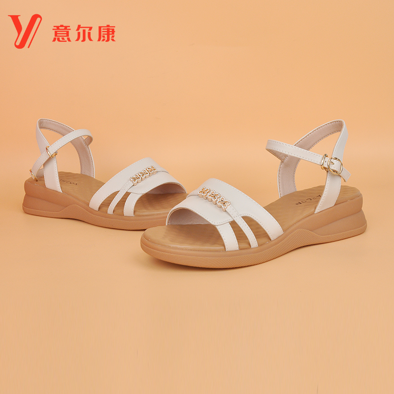 子舒适软底防滑平底鞋 意尔康妈妈凉鞋 平底中老年外穿鞋 新款 女夏季