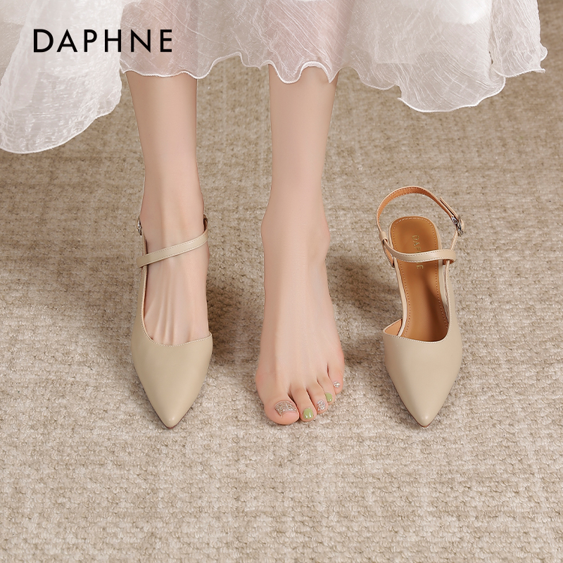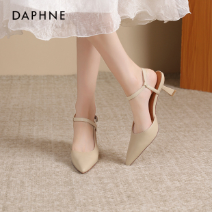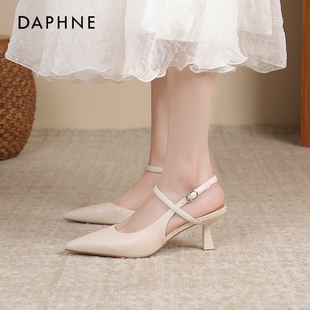 女款 裸色高跟鞋 2025新款 包头细高跟法式 女 夏季 达芙妮尖头高跟凉鞋