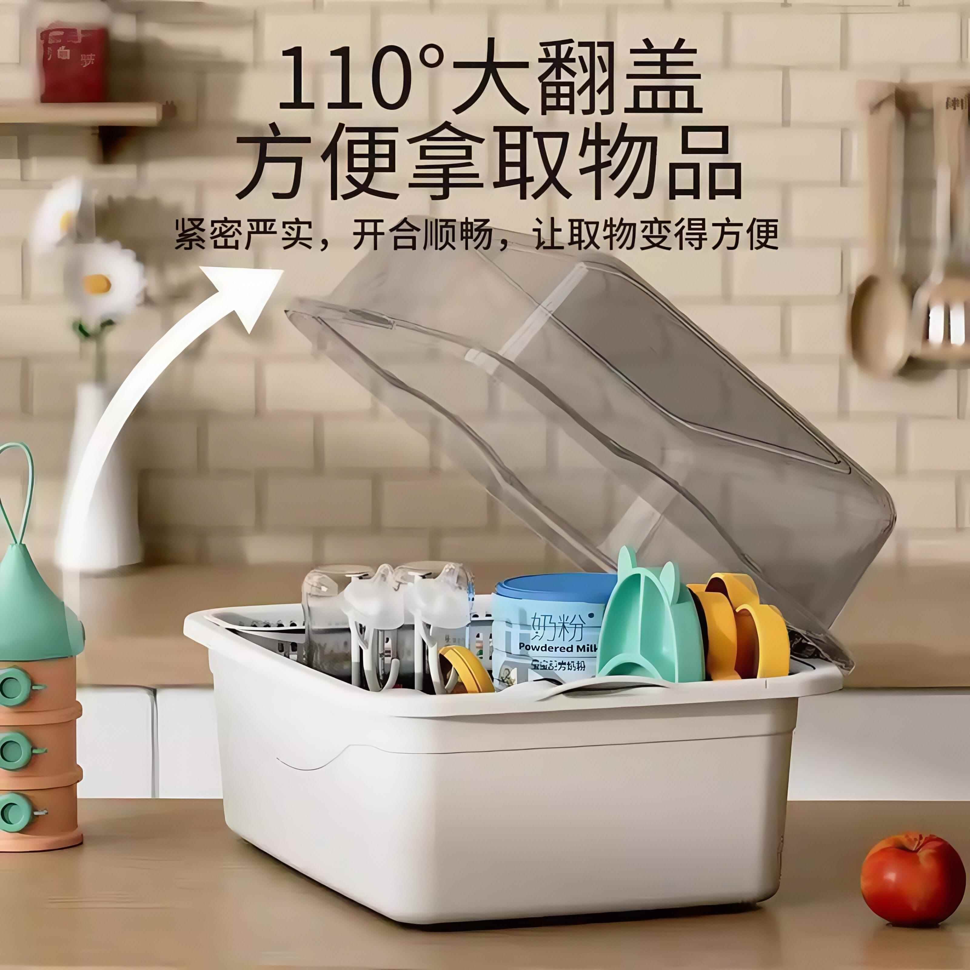 奶瓶收纳盒宝宝餐具沥水架婴儿辅食工具专用装 碗筷防尘储存置物箱