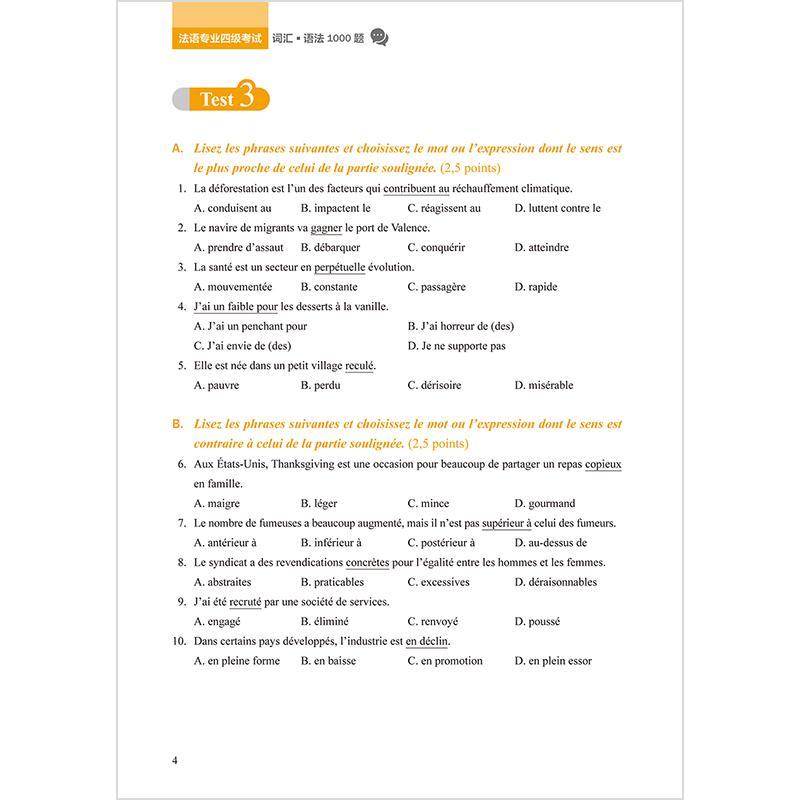 语法1000题 法语专业4级词汇和语法专项突破 法语专业四级考试样题集 法语自学教材 外研社 法语语法书 法语专业四级考试词汇