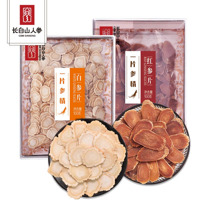长白山人参白参片红参片14 20mm大片整支人参切片泡水营养品补品