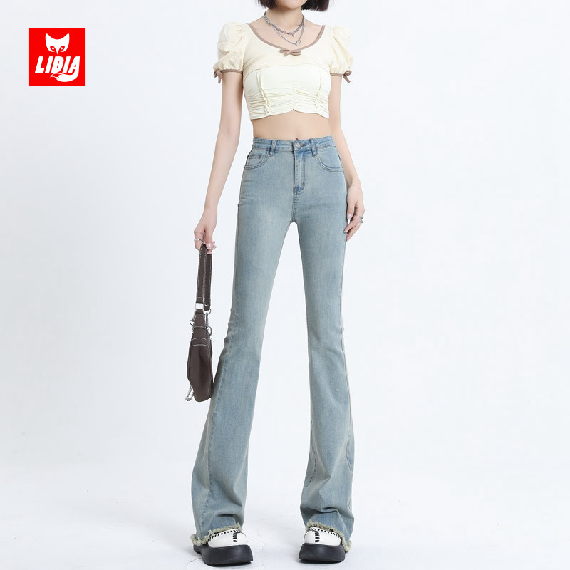 25年春夏女士潮流时尚 牛仔裤 休闲薄款 喇叭裤 子 修身 SPAO韩国同款