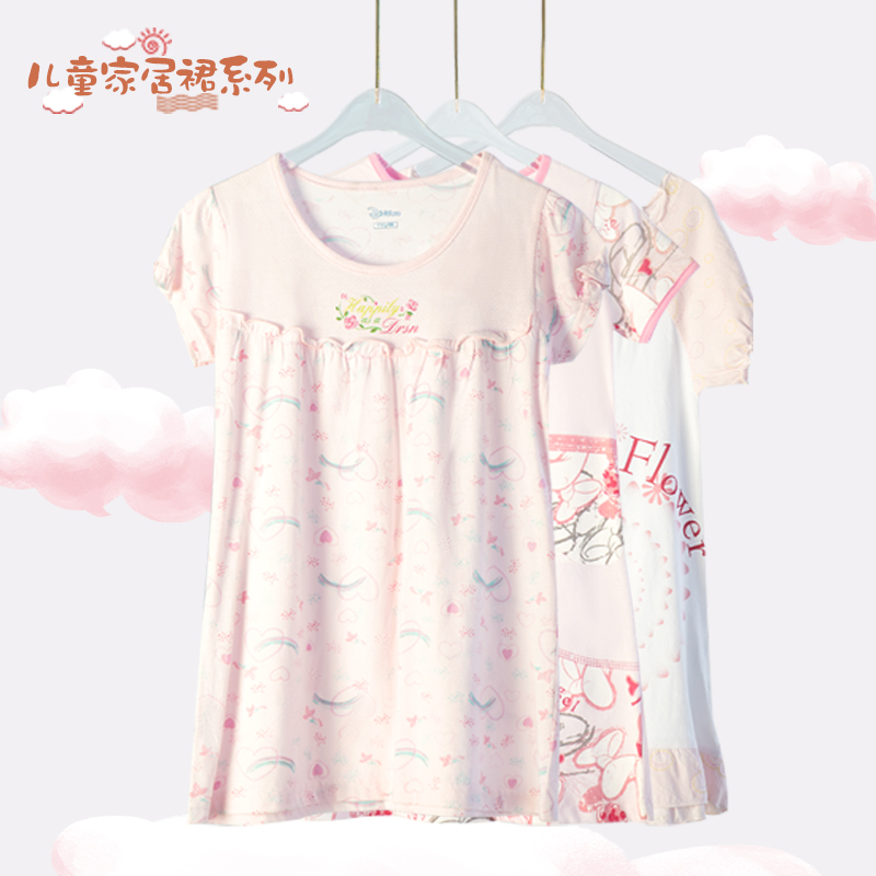女孩公主儿童睡衣家居裙 中大童薄款 帝日斯诺女童睡裙夏季 棉短袖