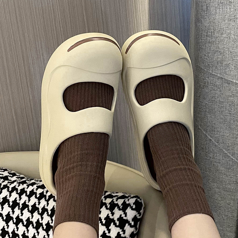 女外穿厚底踩屎感室内居家开口笑凉鞋 包头半拖鞋 拖 新款 2024年夏季