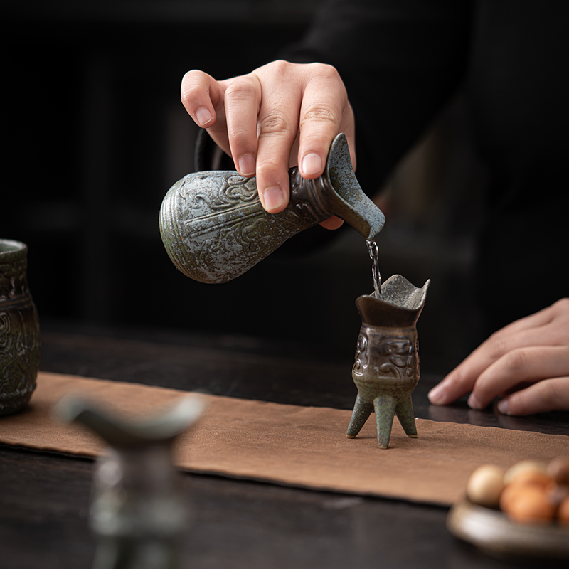 家用中式 复古中国风陶瓷白酒杯 烈酒爵杯小酒蛊 青铜釉 记今朝