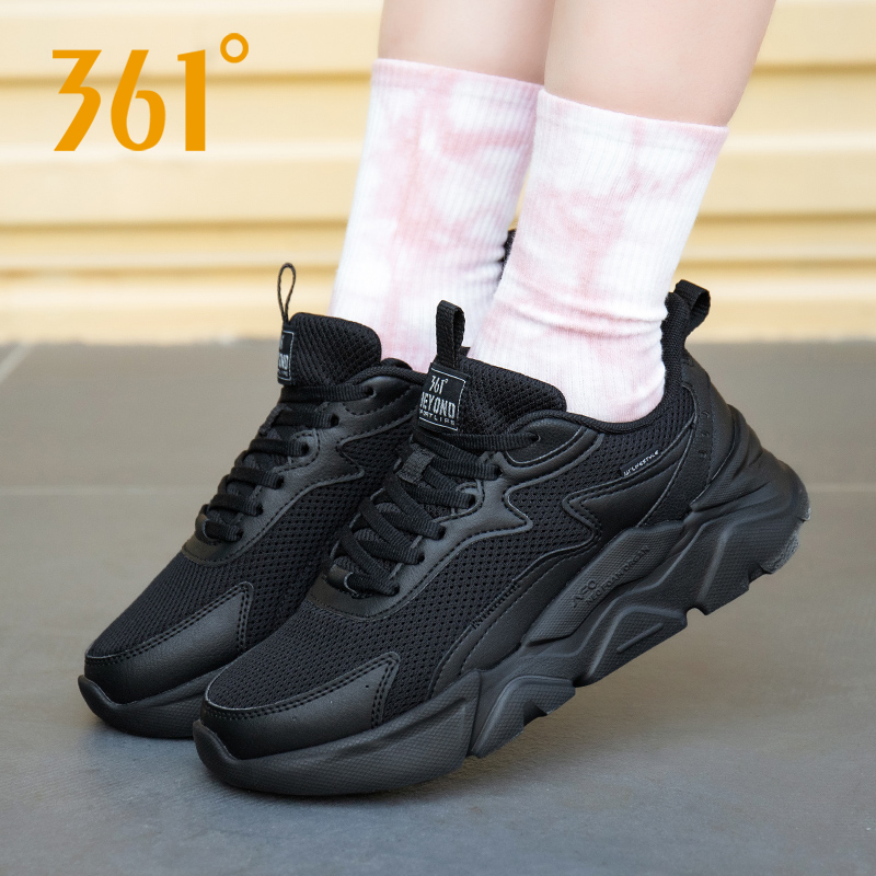 皮面防泼水爸爸减震网面休闲鞋 特步跑步鞋 黑色运动鞋 秋冬新款 男鞋