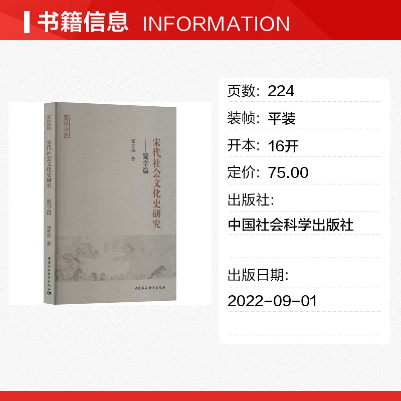 文化史社科 著 新华书店正版 图书籍 社 宋代社会文化史研究——蜀学篇 中国社会科学出版 邹重华