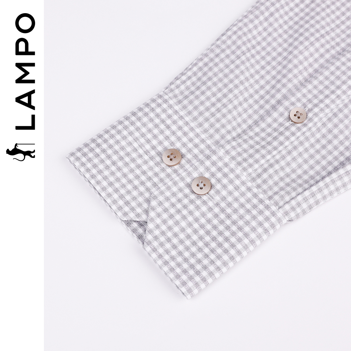 易打理 纯棉衬衫 LAMPO 长袖 3D雕刻感提花易打理衬衣 蓝豹男士