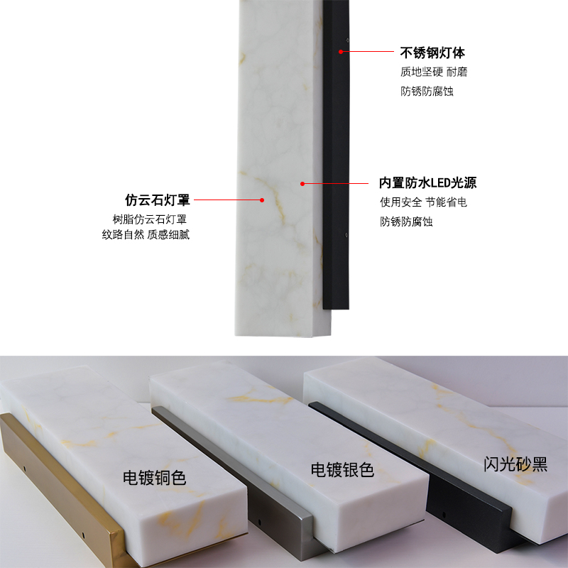 现代简约户外壁灯阳台大厅别墅大门口室外防水不锈钢仿云石壁灯