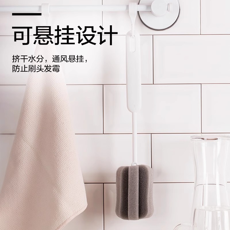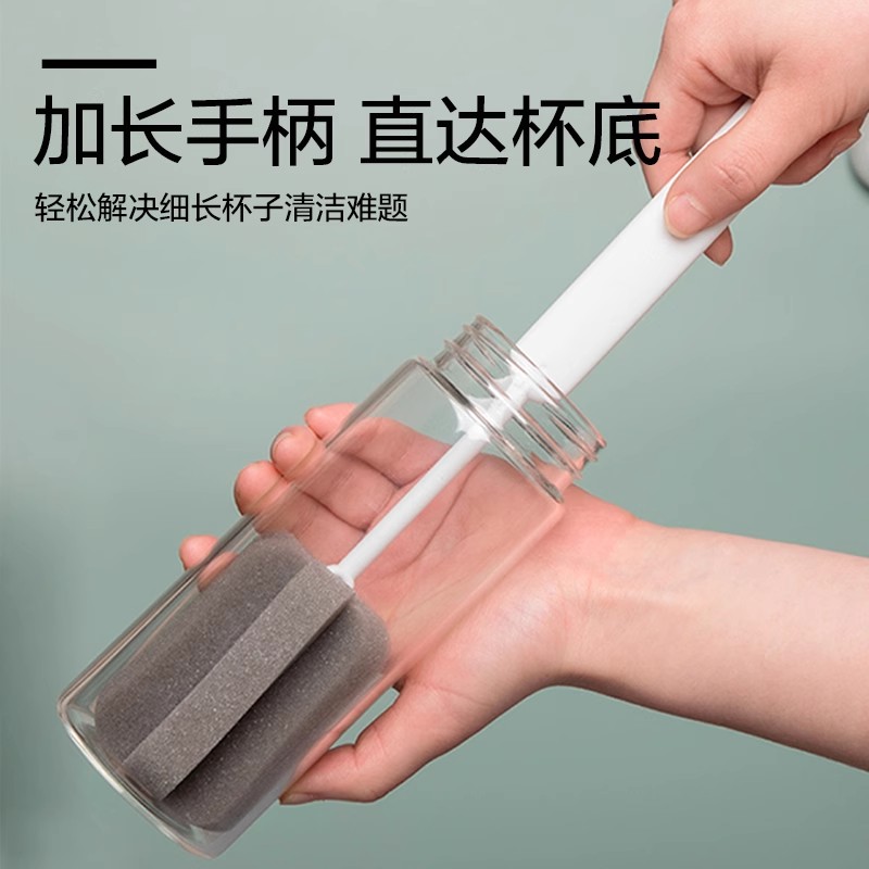 茶花长柄杯刷洗杯子神器清洁刷多功能水杯婴儿奶瓶洗茶杯海绵刷子